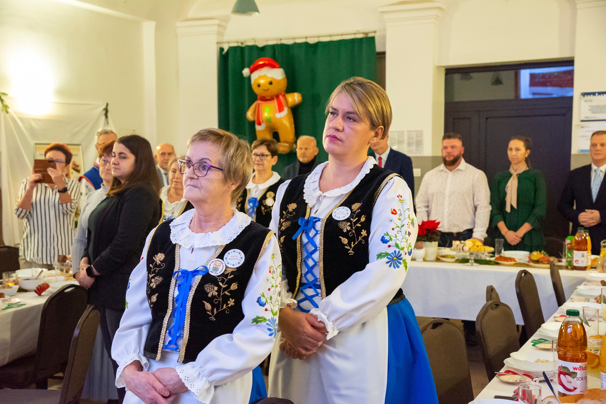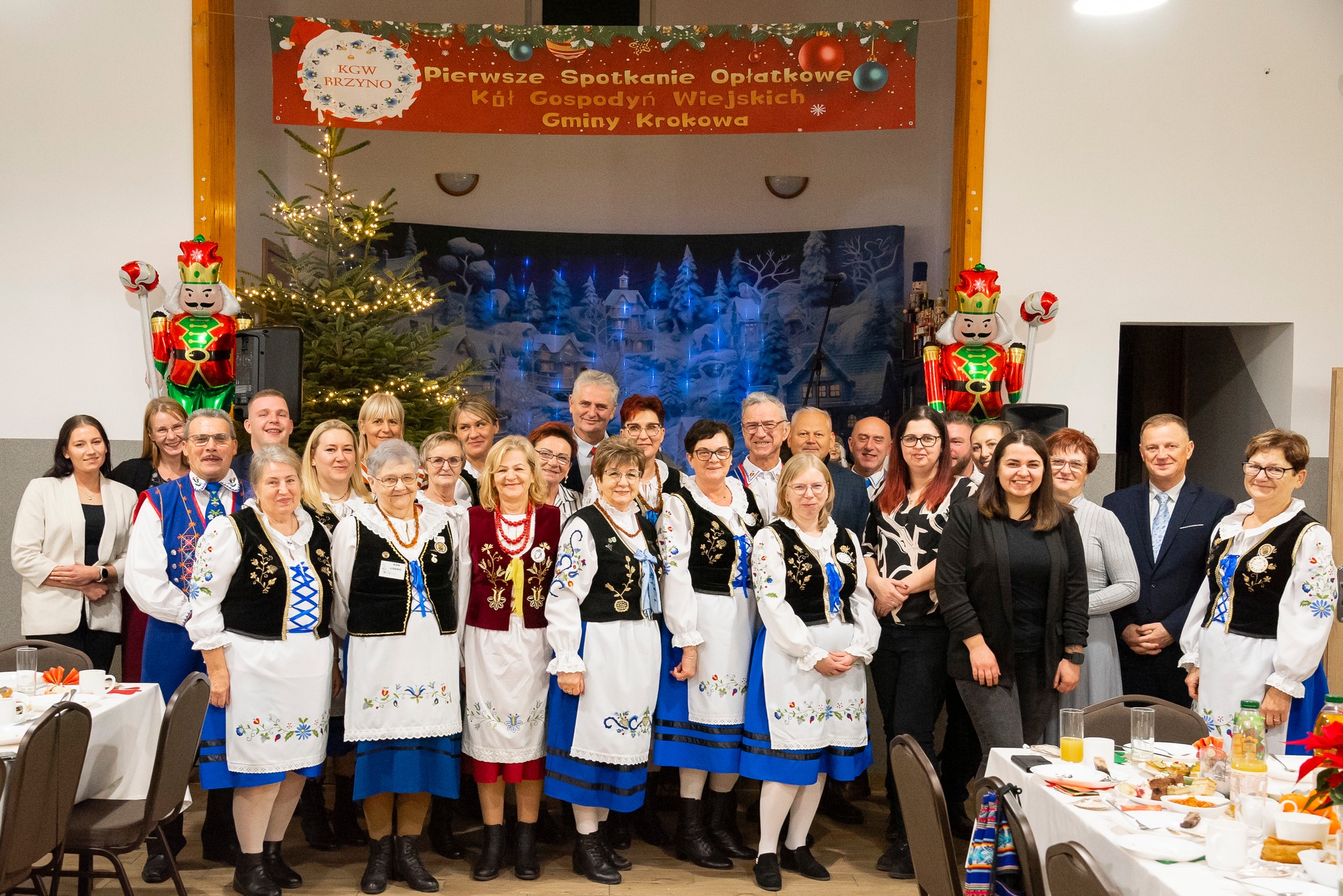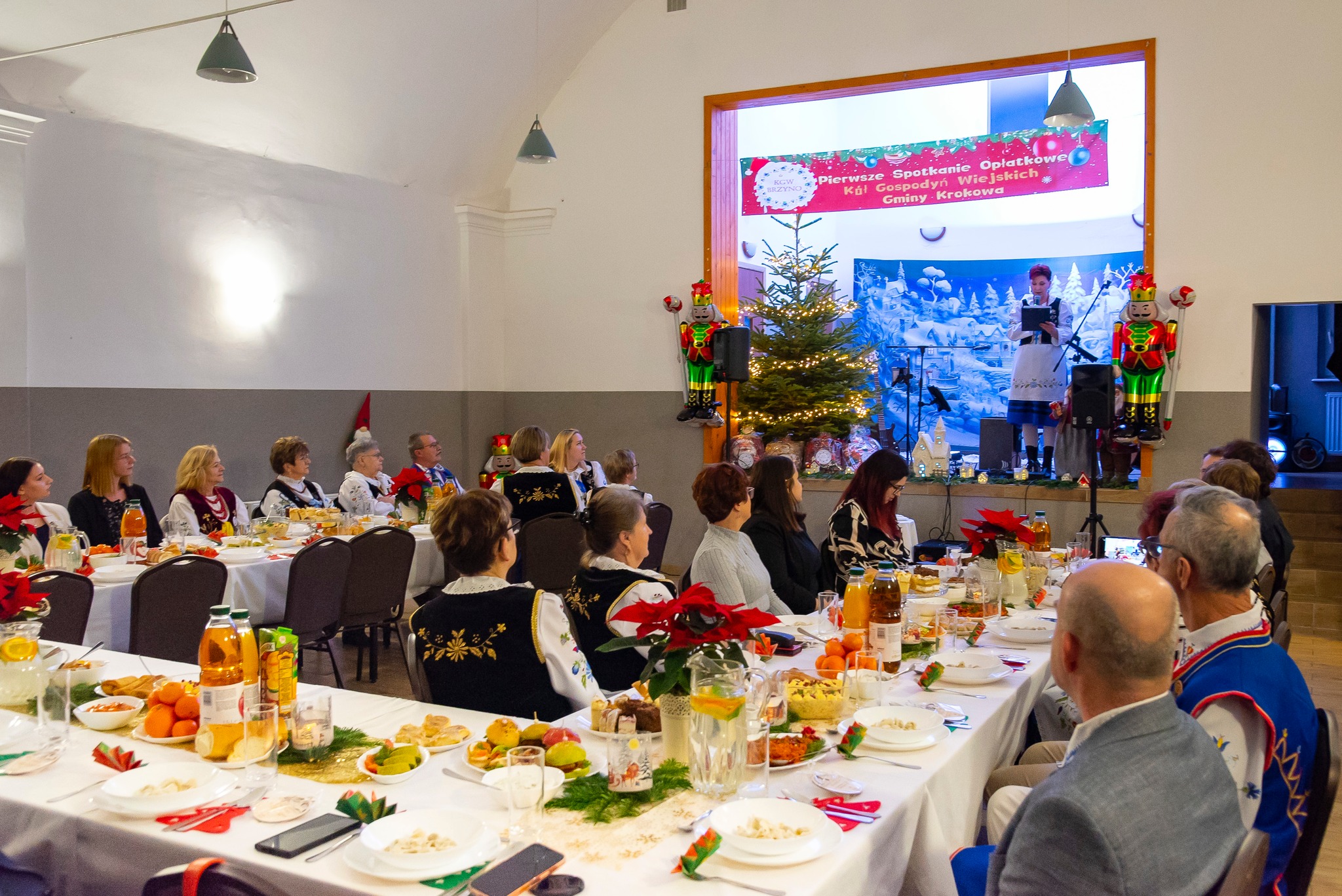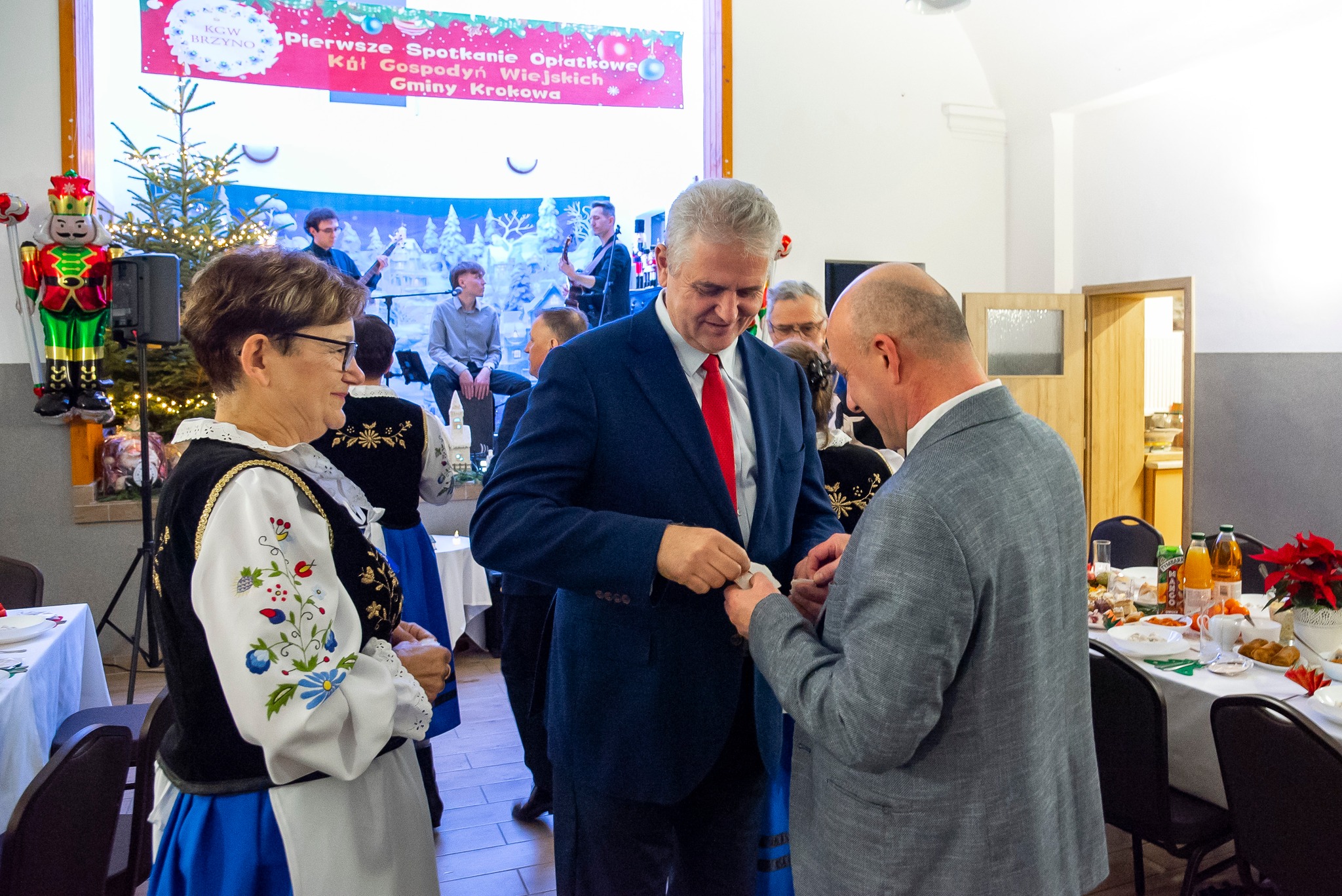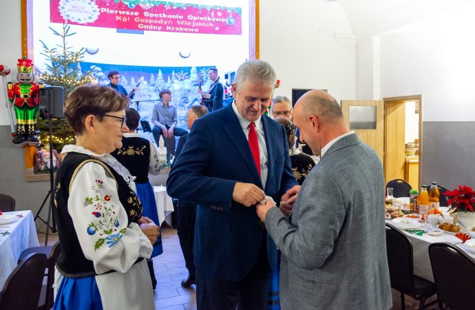 Do magicznej atmosfery nadchodzących Świąt Bożego Narodzenia wspaniale wprowadził zespół MYSTAKE, którego występ na scenie porwał serca zgromadzonych i rozbrzmiał kolędami. Na pierwszym wspólnym spotkaniu opłatkowym Kół Gospodyń Wiejskich gminy Krokowa nie zabrakło również ważnych osobistości: starosty puckiego Jarosława Białka, wójta gminy Krokowa Adama Śliwickiego oraz dyrektora Krokowskiego Centrum Kultury w Krokowej Krzysztofa Obszyńskiego. Ich obecność to wyraz wsparcia dla pracy KGW i dowód na to, że lokalne władze doceniają ich wkład w rozwój społeczności.