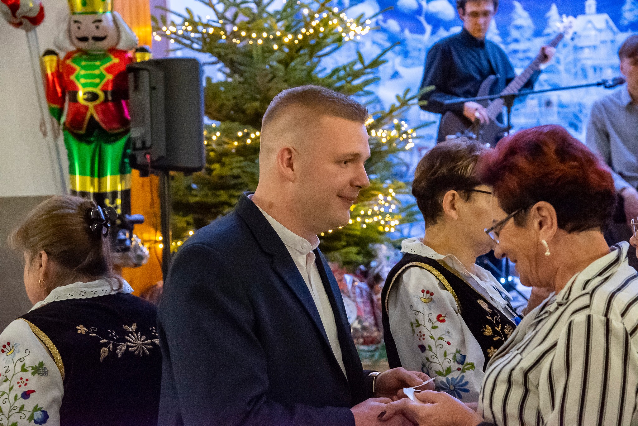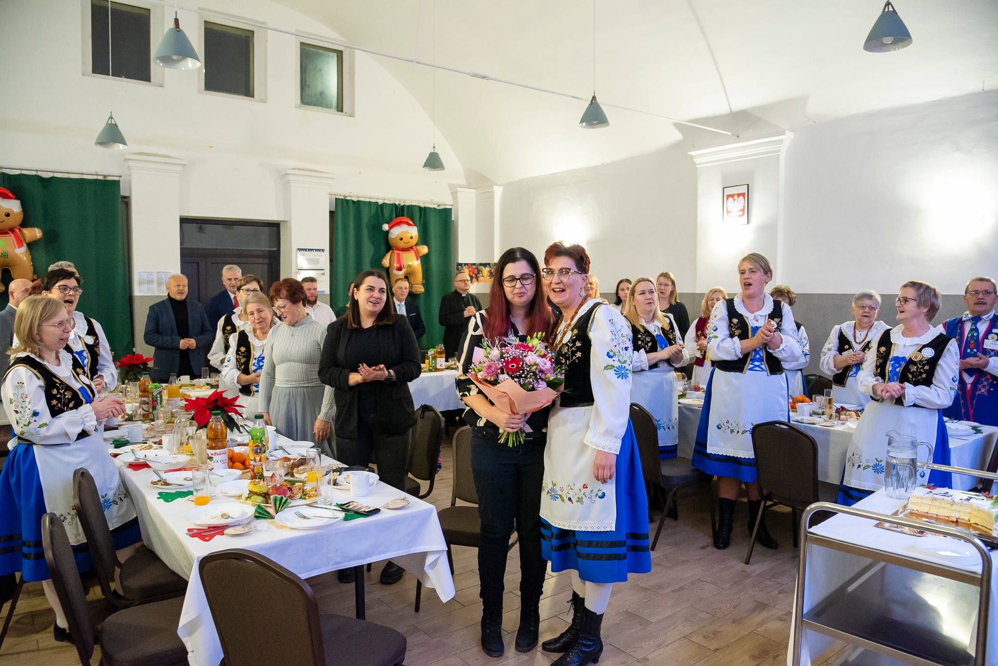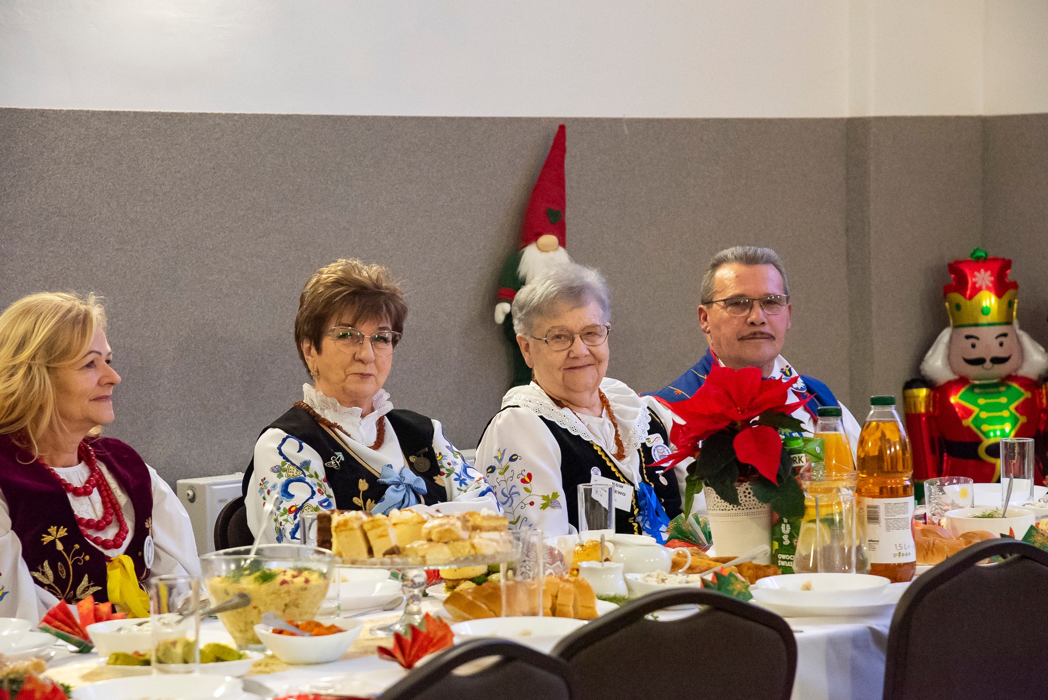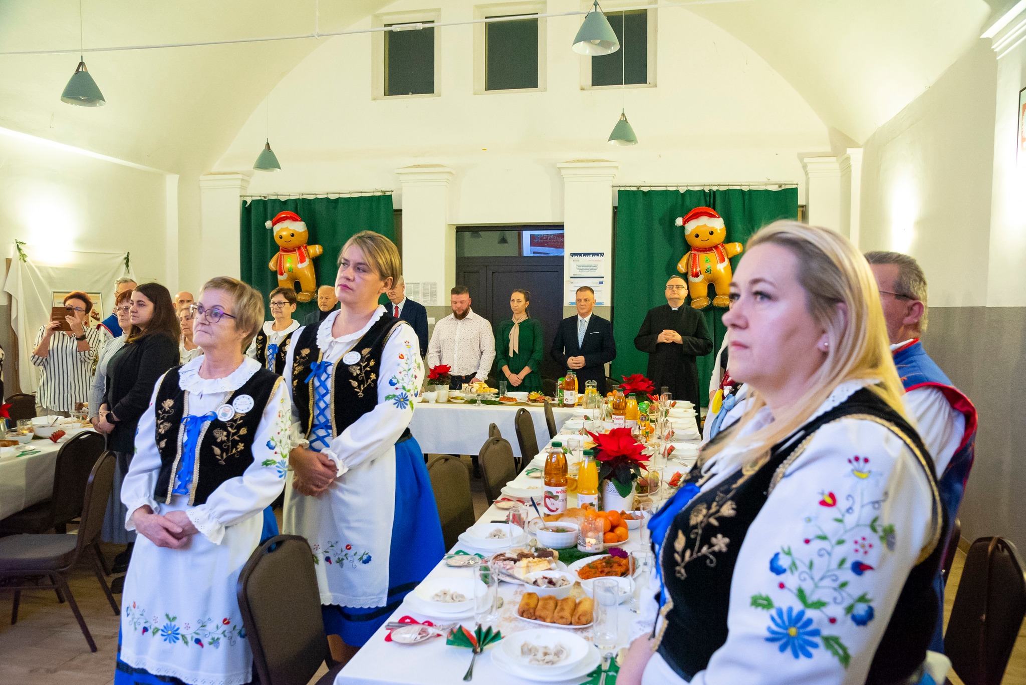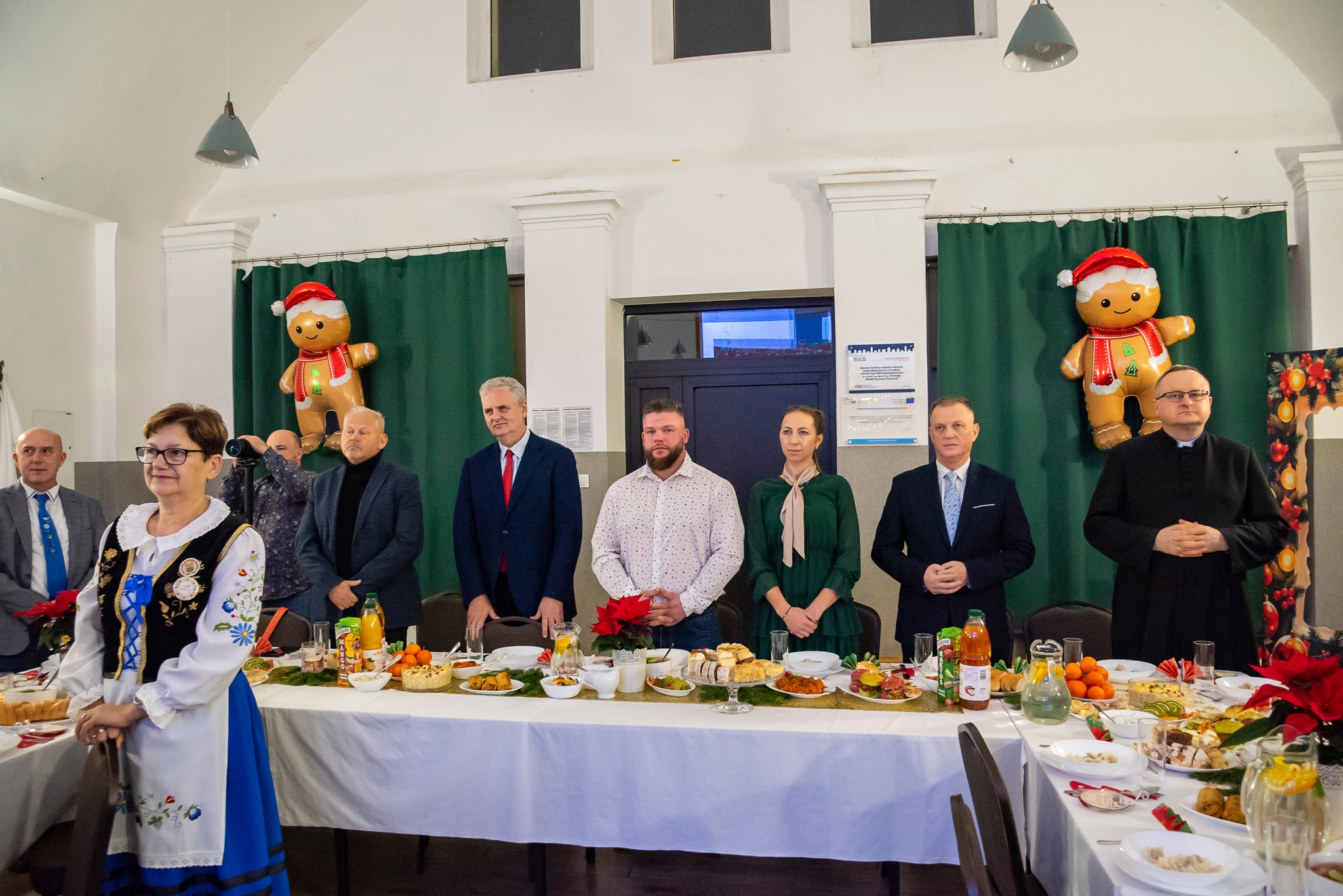 Do magicznej atmosfery nadchodzących Świąt Bożego Narodzenia wspaniale wprowadził zespół MYSTAKE, którego występ na scenie porwał serca zgromadzonych i rozbrzmiał kolędami. Na pierwszym wspólnym spotkaniu opłatkowym Kół Gospodyń Wiejskich gminy Krokowa nie zabrakło również ważnych osobistości: starosty puckiego Jarosława Białka, wójta gminy Krokowa Adama Śliwickiego oraz dyrektora Krokowskiego Centrum Kultury w Krokowej Krzysztofa Obszyńskiego. Ich obecność to wyraz wsparcia dla pracy KGW i dowód na to, że lokalne władze doceniają ich wkład w rozwój społeczności.
