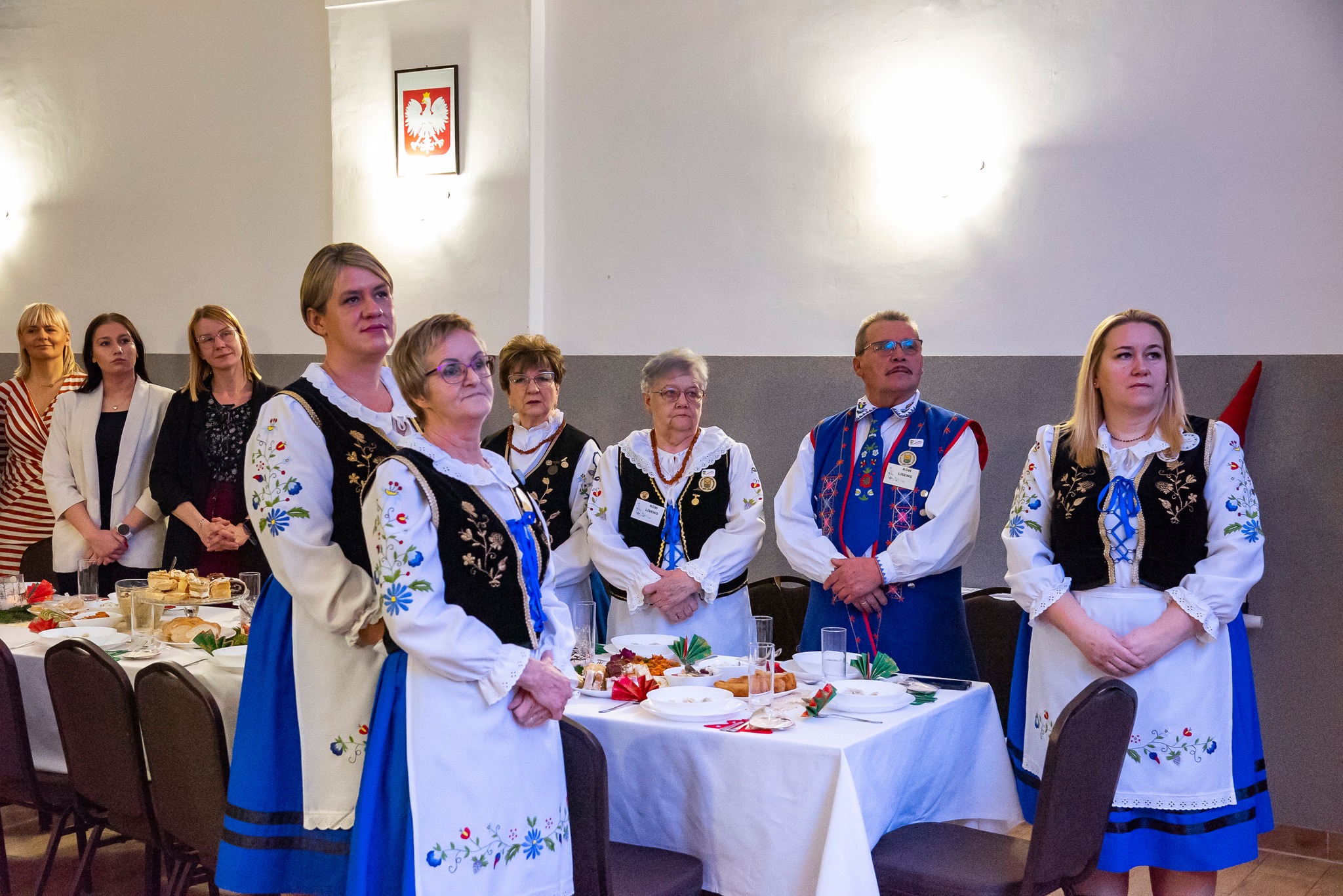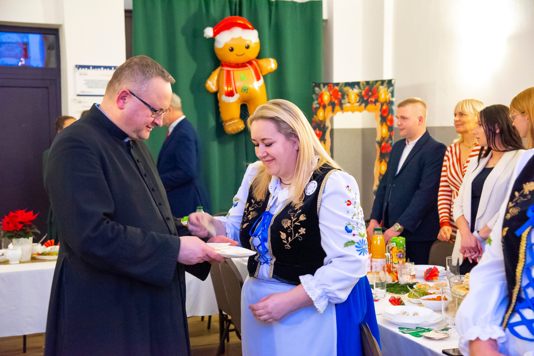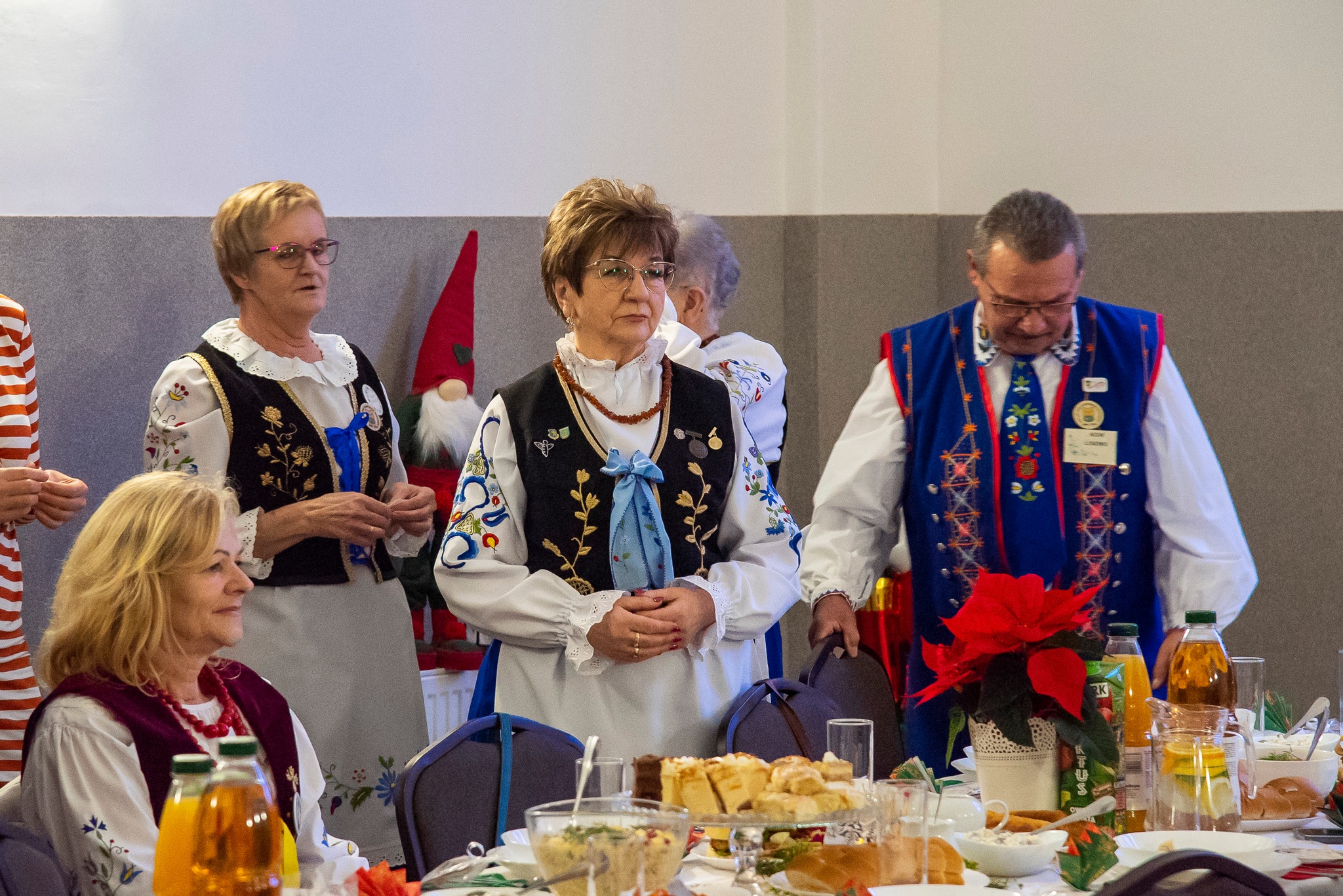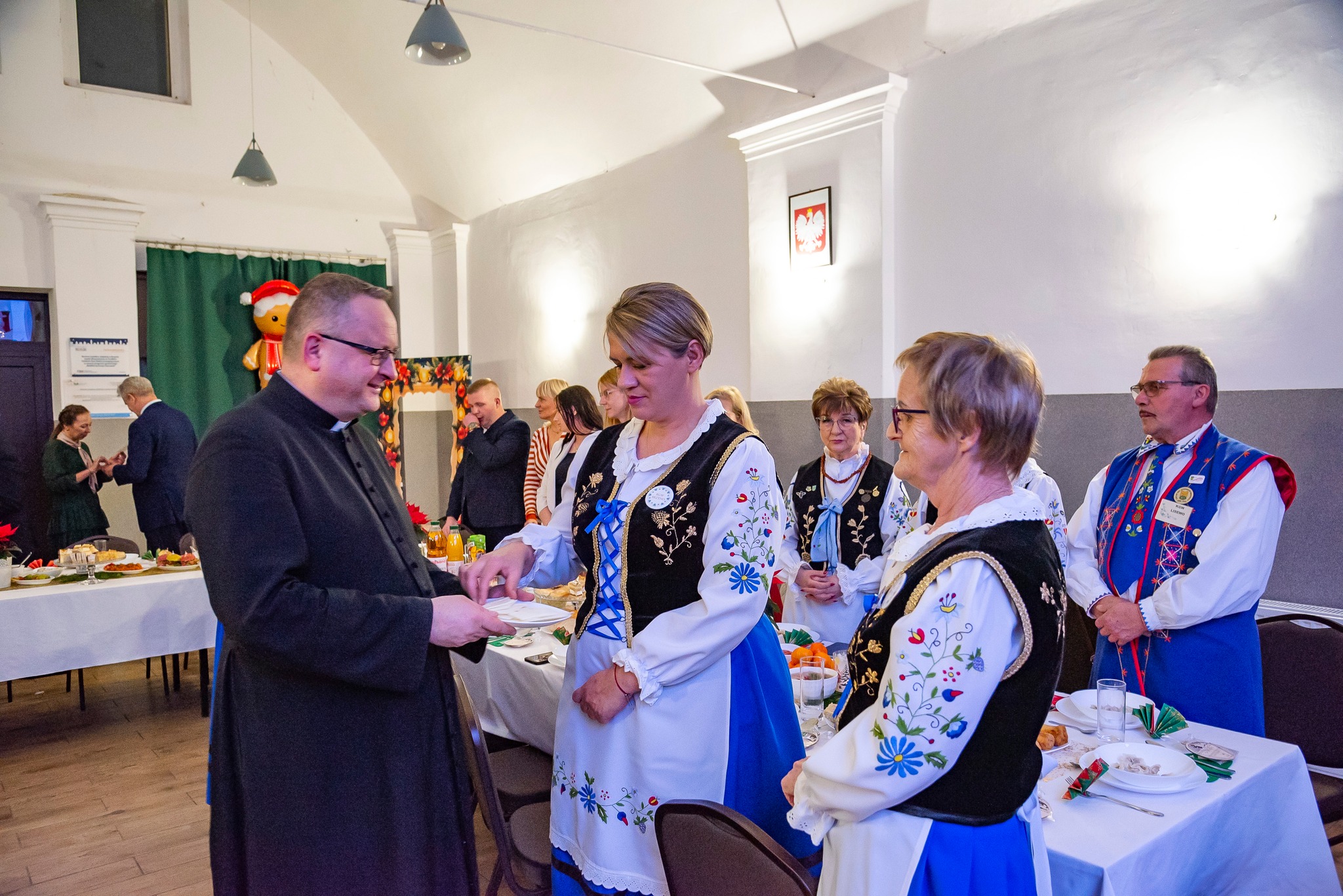 Do magicznej atmosfery nadchodzących Świąt Bożego Narodzenia wspaniale wprowadził zespół MYSTAKE, którego występ na scenie porwał serca zgromadzonych i rozbrzmiał kolędami. Na pierwszym wspólnym spotkaniu opłatkowym Kół Gospodyń Wiejskich gminy Krokowa nie zabrakło również ważnych osobistości: starosty puckiego Jarosława Białka, wójta gminy Krokowa Adama Śliwickiego oraz dyrektora Krokowskiego Centrum Kultury w Krokowej Krzysztofa Obszyńskiego. Ich obecność to wyraz wsparcia dla pracy KGW i dowód na to, że lokalne władze doceniają ich wkład w rozwój społeczności.