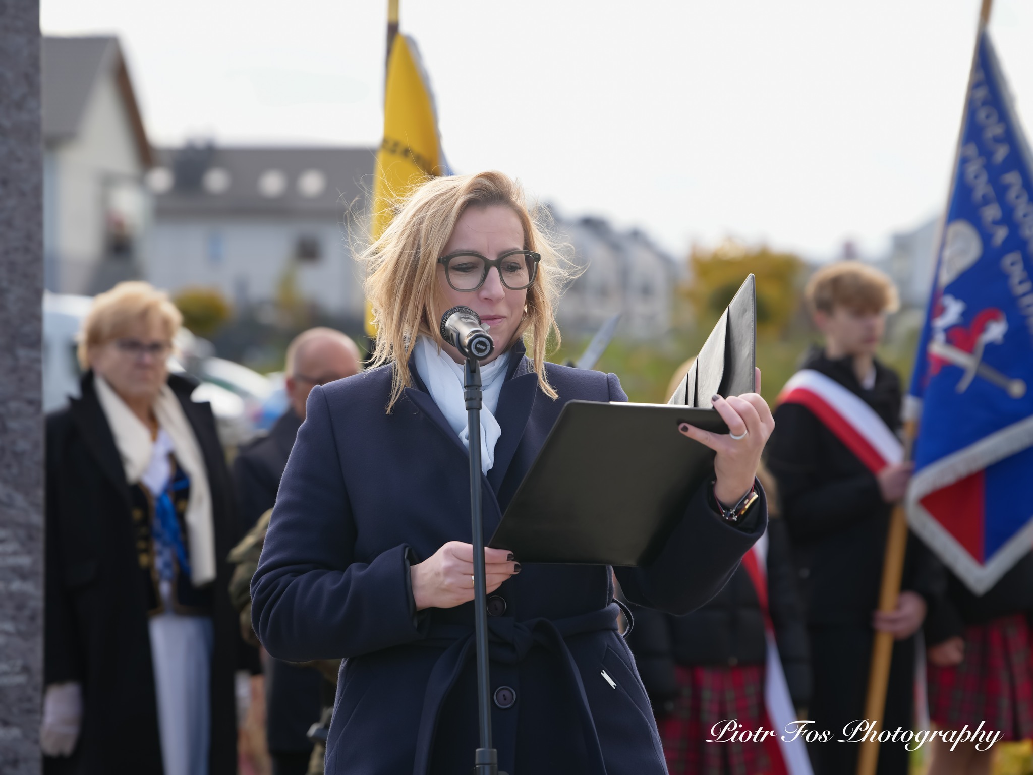 W swoim przemówieniu wójt gminy Kosakowo Eunika Niemc podkreśliła tragiczny charakter losów wszystkich, którzy spoczywali na nekropolii zlokalizowanej w miejscu, w którym obecnie znajduje się pomnik. Wspomniała również o rozstrzelanym w tym miejscu przez Niemców, 26 października 1939 roku, szesnastolatku Józefie Radomskim.