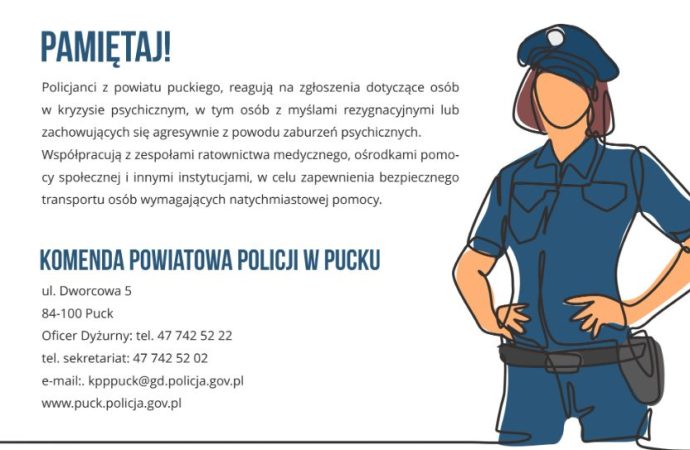 Policja odgrywa ważną rolę nie tylko w zapewnianiu bezpieczeństwa, ale również w profilaktyce zdrowia psychicznego. W powiecie puckim funkcjonariusze policji aktywnie angażują się w działania mające na celu zapobieganie problemom psychicznym i wspieranie osób w kryzysie.
