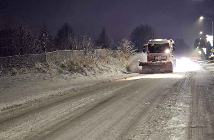 – W związku z intensywnymi opadami śniegu, na drogach powiatowych prowadzone są prace związane z odśnieżaniem oraz poszerzaniem jezdni – czytamy w komunikacie.